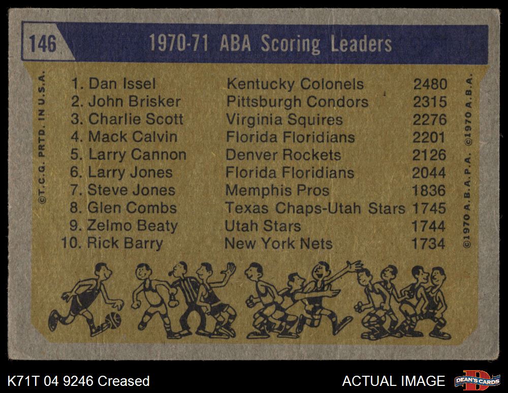 1971 Topps #146 - John Brisker / Dan Issel / Charlie Scott ABA Scoring Leaders 2 - GOOD
