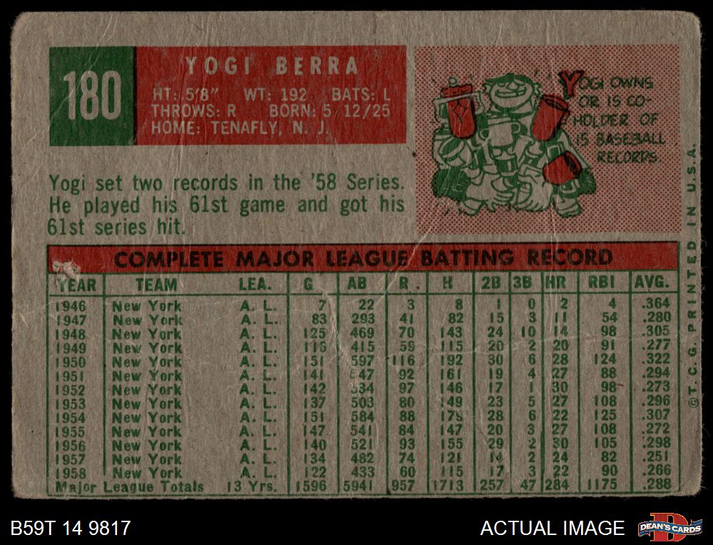 1959 Topps #180 Yogi Berra