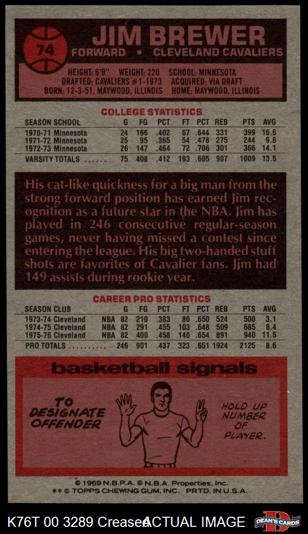 1976 Topps #74 Jim Brewer Front Thumbnail