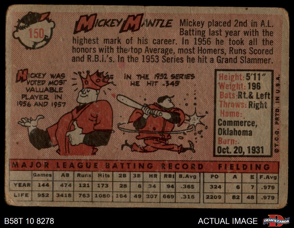 1958 Topps #150 Mickey Mantle AUTHENTIC