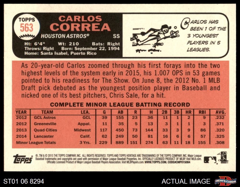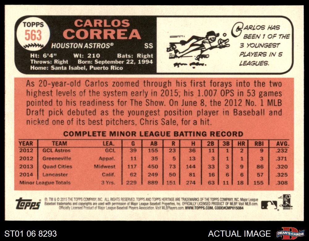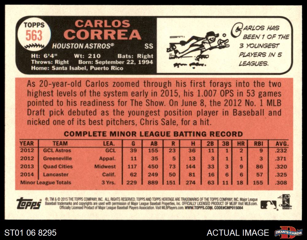 2015 Topps Heritage #563 Carlos Correa 8 - NM/MT
