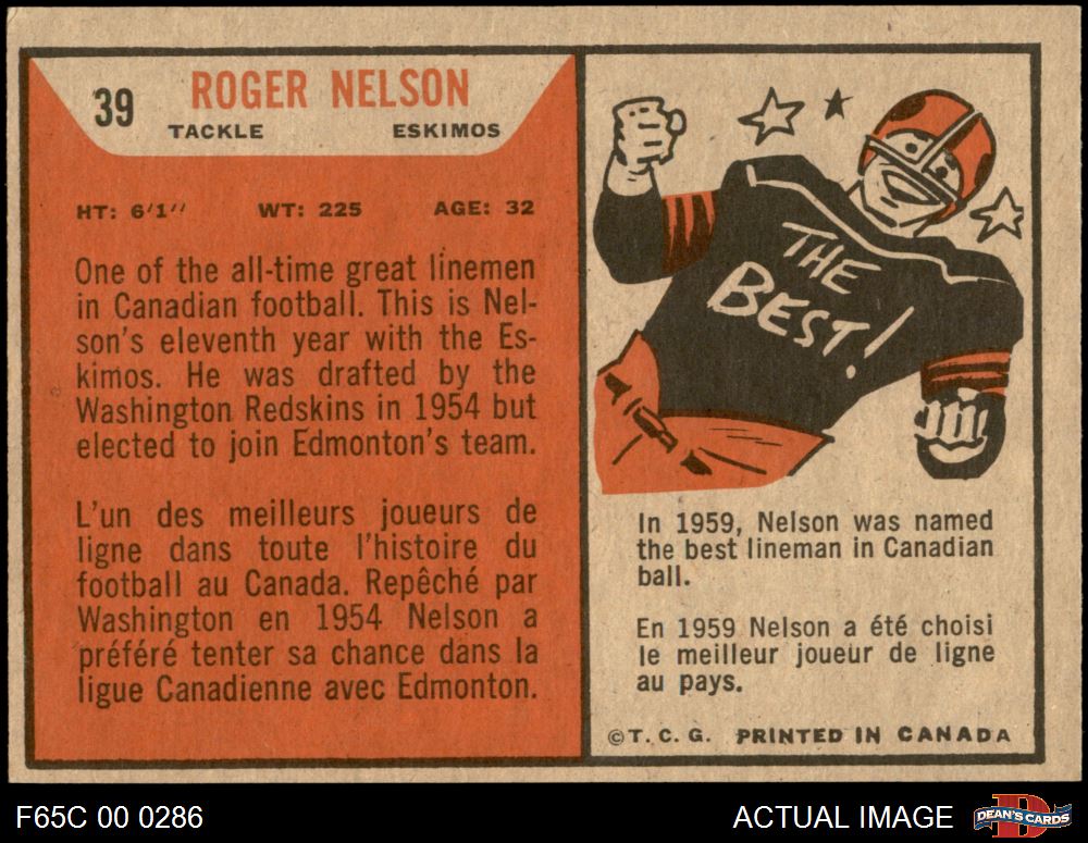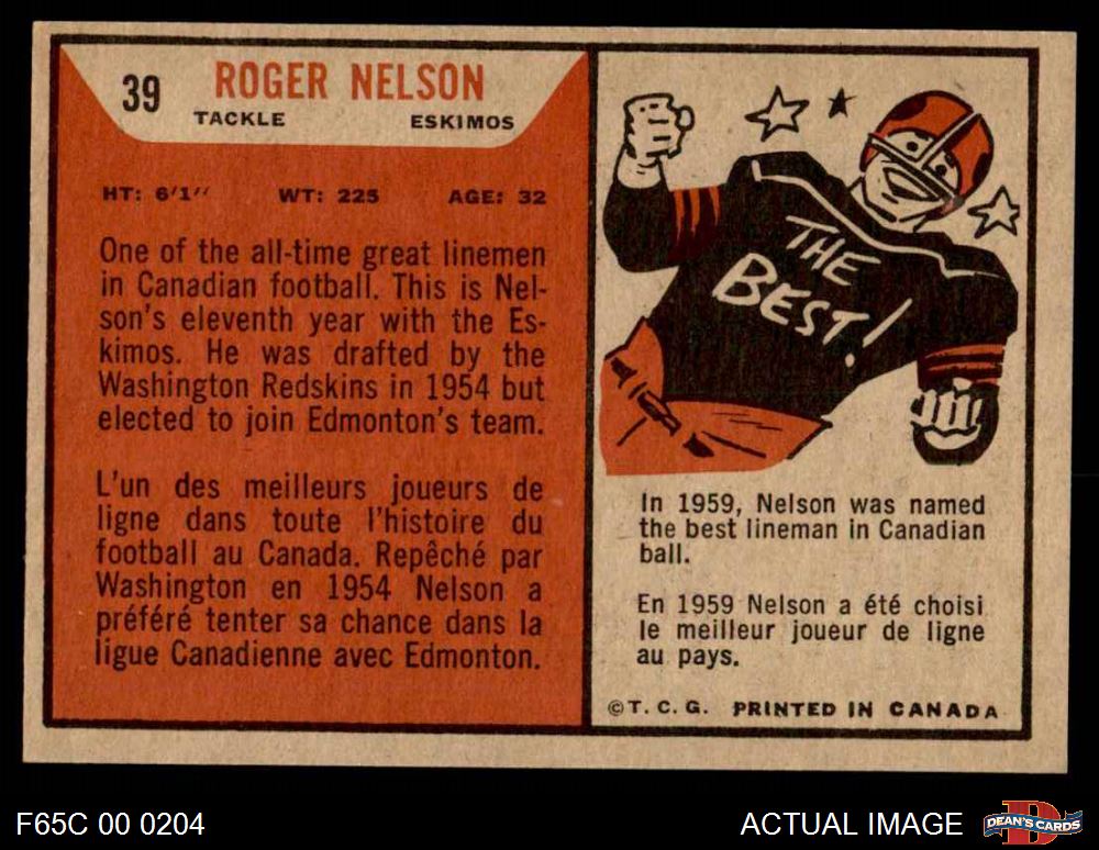 1965 Topps CFL #39 Roger Nelson