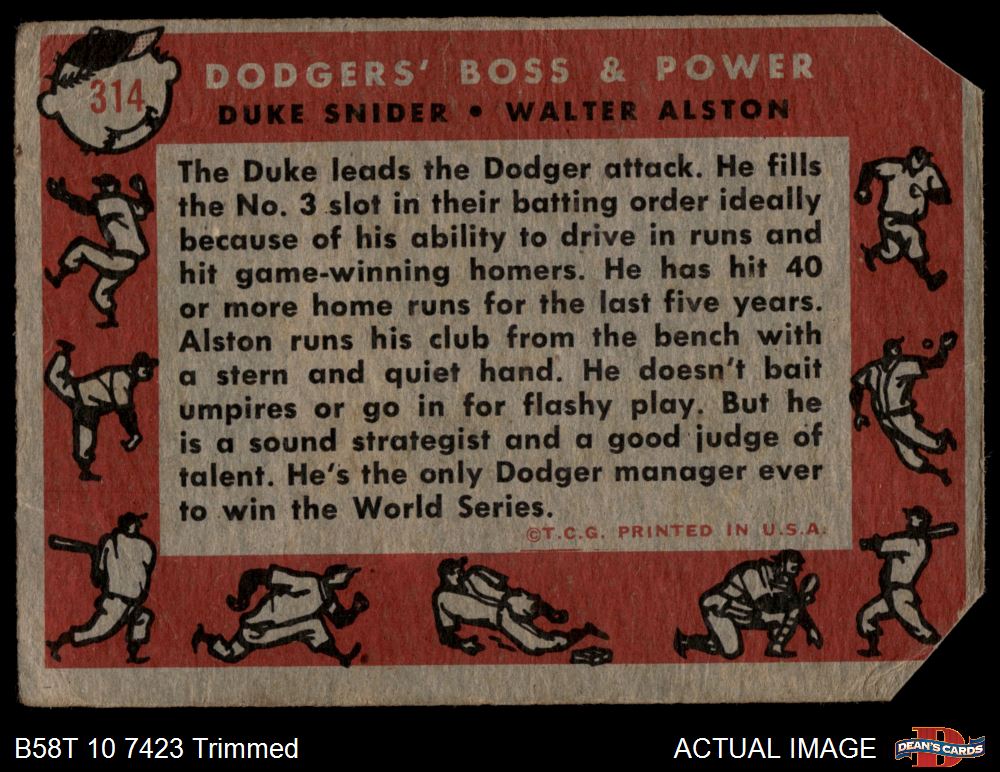1958 Topps #314 - Walter Alston / Duke Snider Dodgers' Boss & Power AUTHENTIC