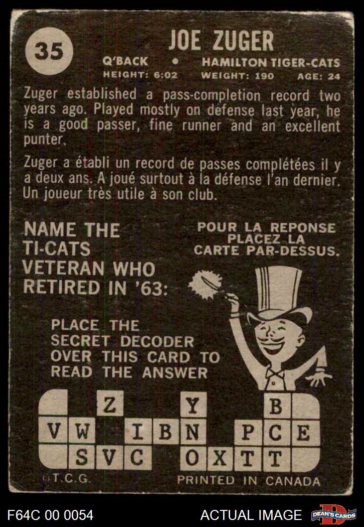 1964 Topps CFL #35 Joe Zuger 1.5 - FAIR