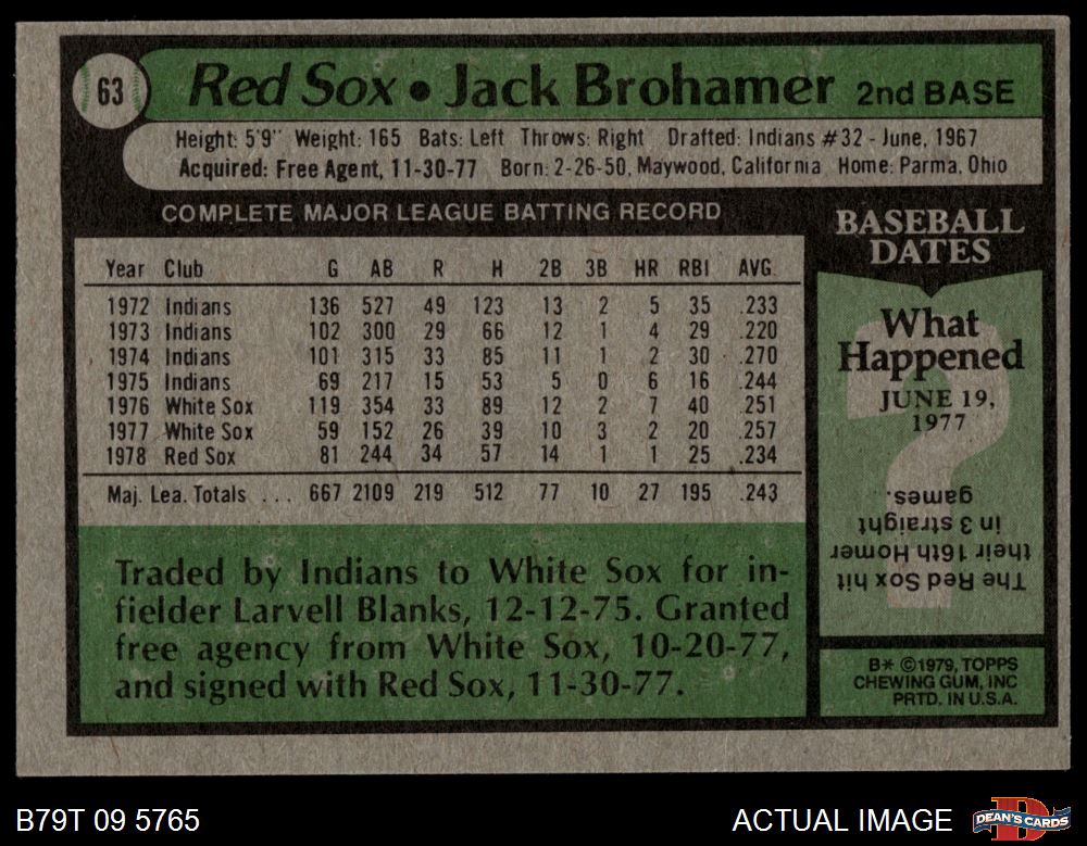 1979 Topps #63 Jack Brohamer 6.5 - EX/MT+