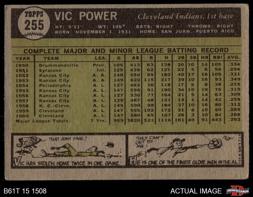 1961 Topps #255 Vic Power