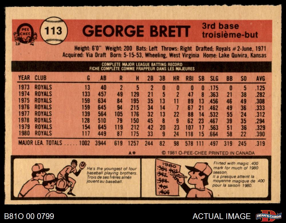 1981 O-Pee-Chee #113 George Brett 4 - VG/EX