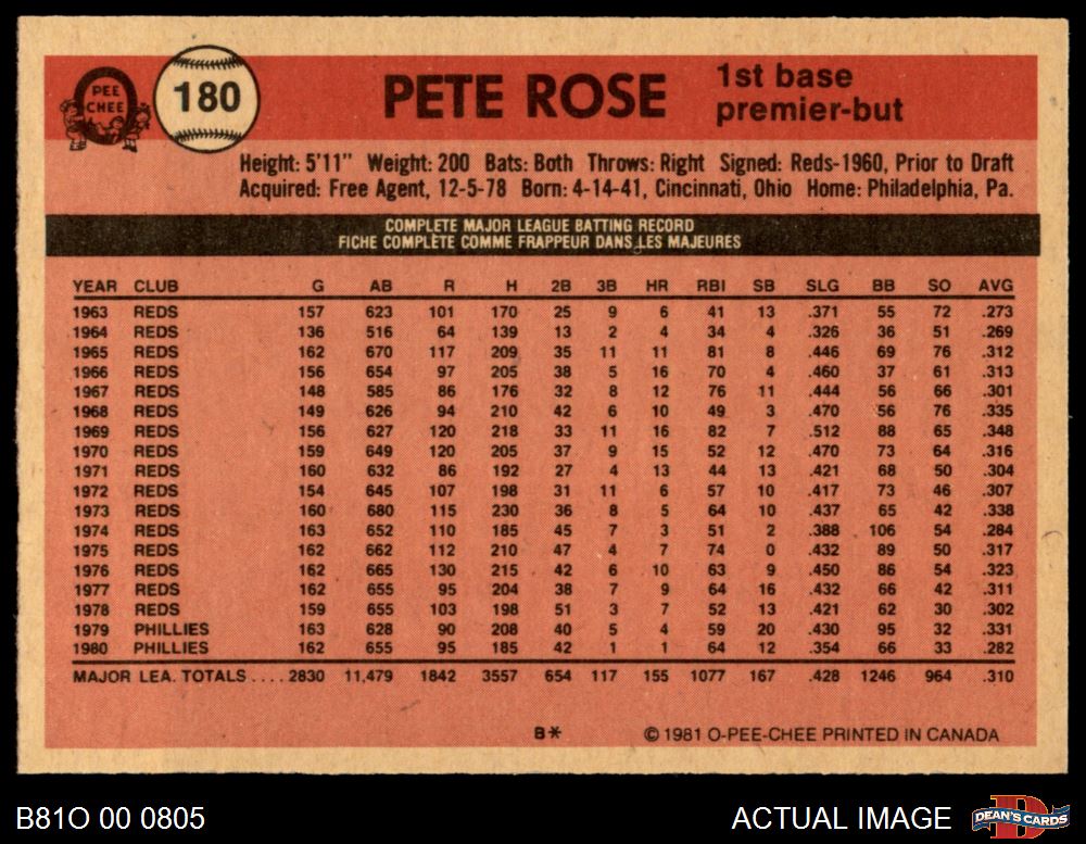 1981 O-Pee-Chee #180 Pete Rose 7 - NM