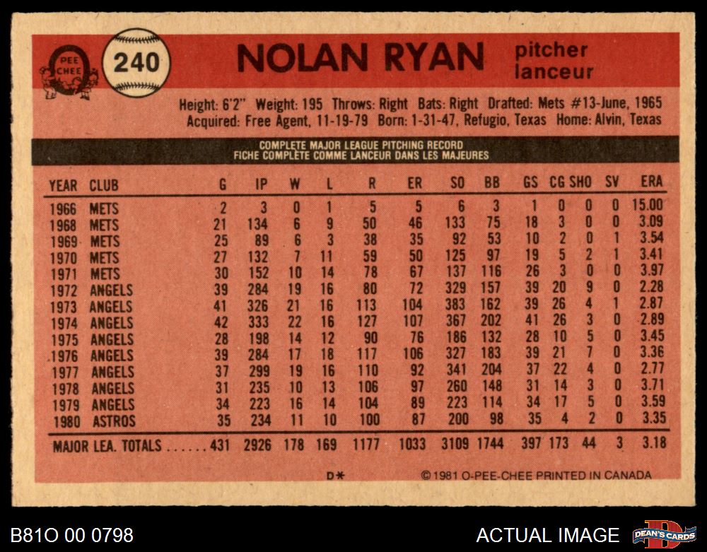 1981 O-Pee-Chee #240 Nolan Ryan 7 - NM