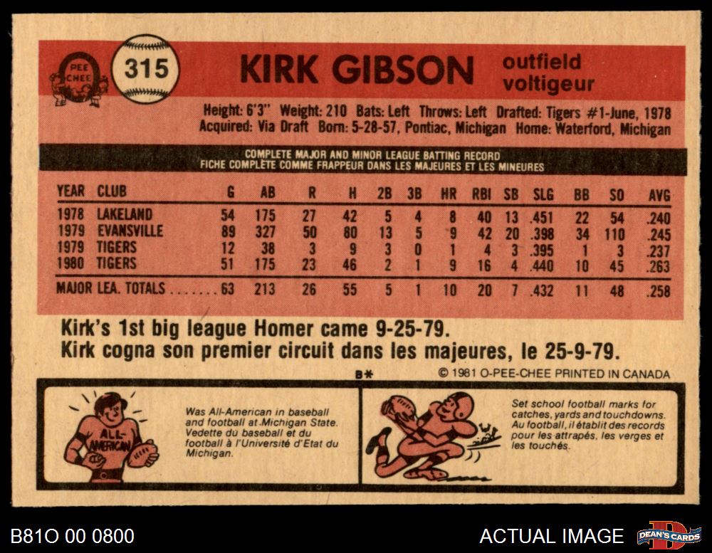 1981 O-Pee-Chee #315 Kirk Gibson 7 - NM