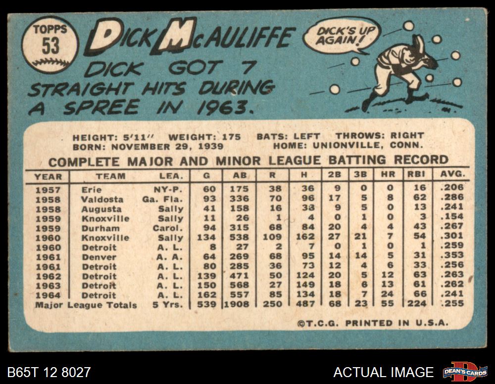 1965 Topps #53 Dick McAuliffe 1.5 - FAIR