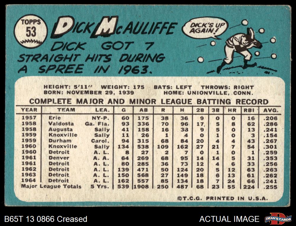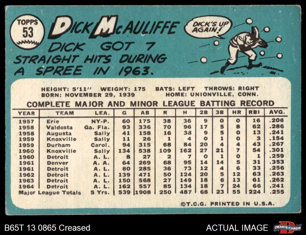 1965 Topps #53 Dick McAuliffe 2 - GOOD