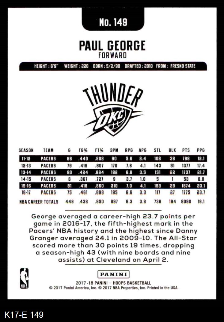 2017 Hoops #149 Paul George 8 - NM/MT