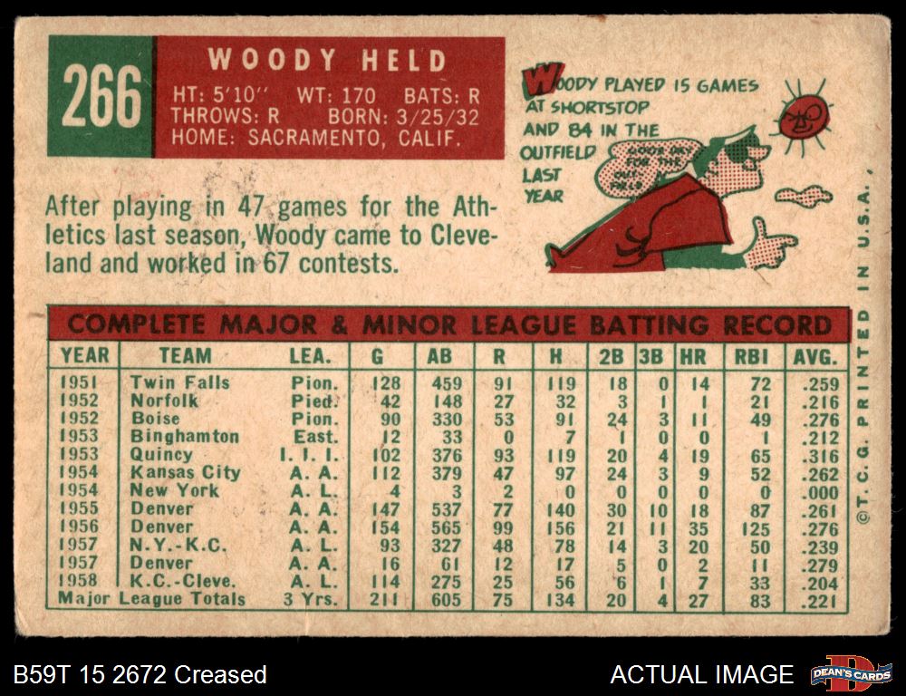 1959 Topps #266 Woodie Held 2 - GOOD