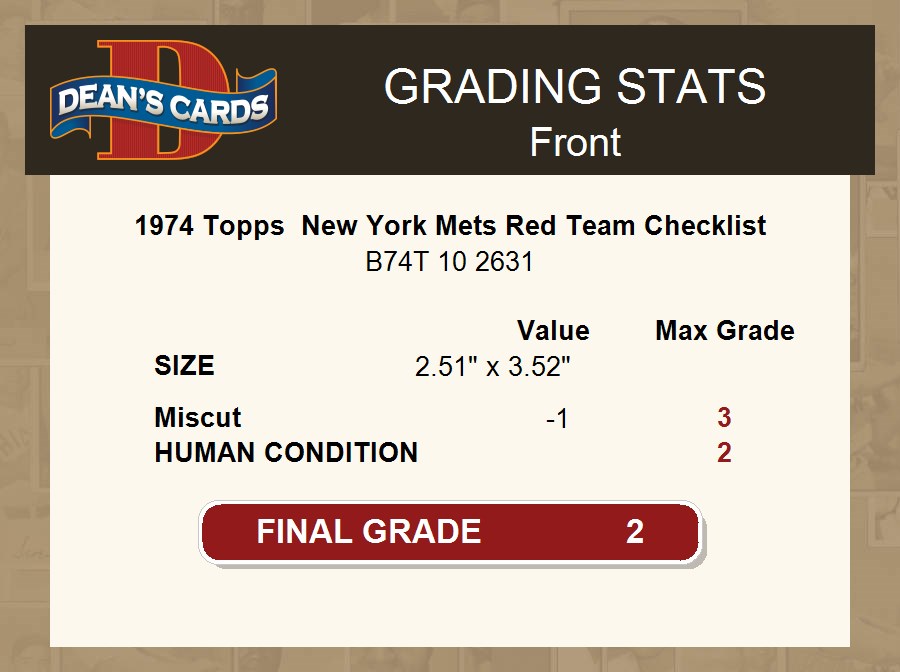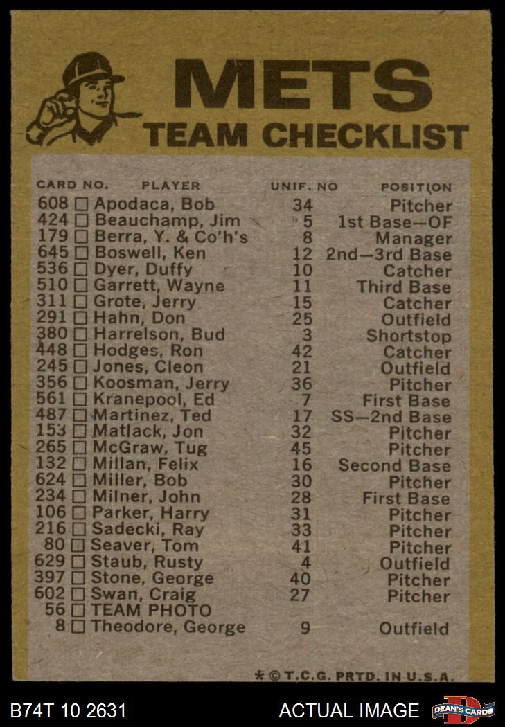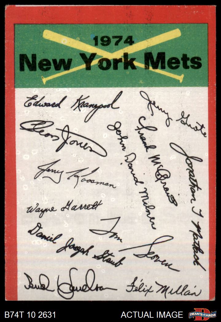 1974 Topps New York Mets Red Team Checklist 2 - GOOD