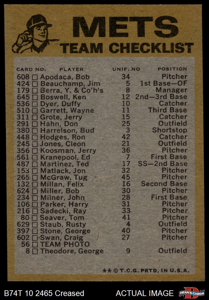 1974 Topps  New York Mets Red Team Checklist Front Thumbnail