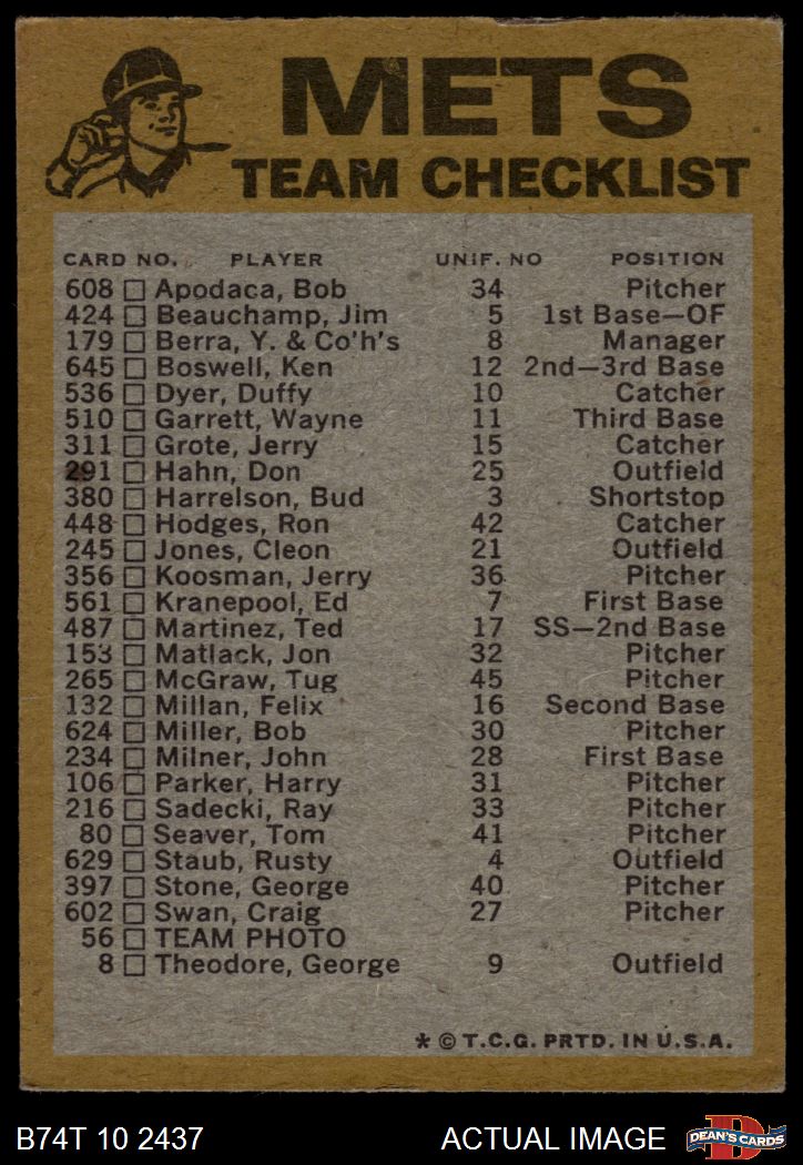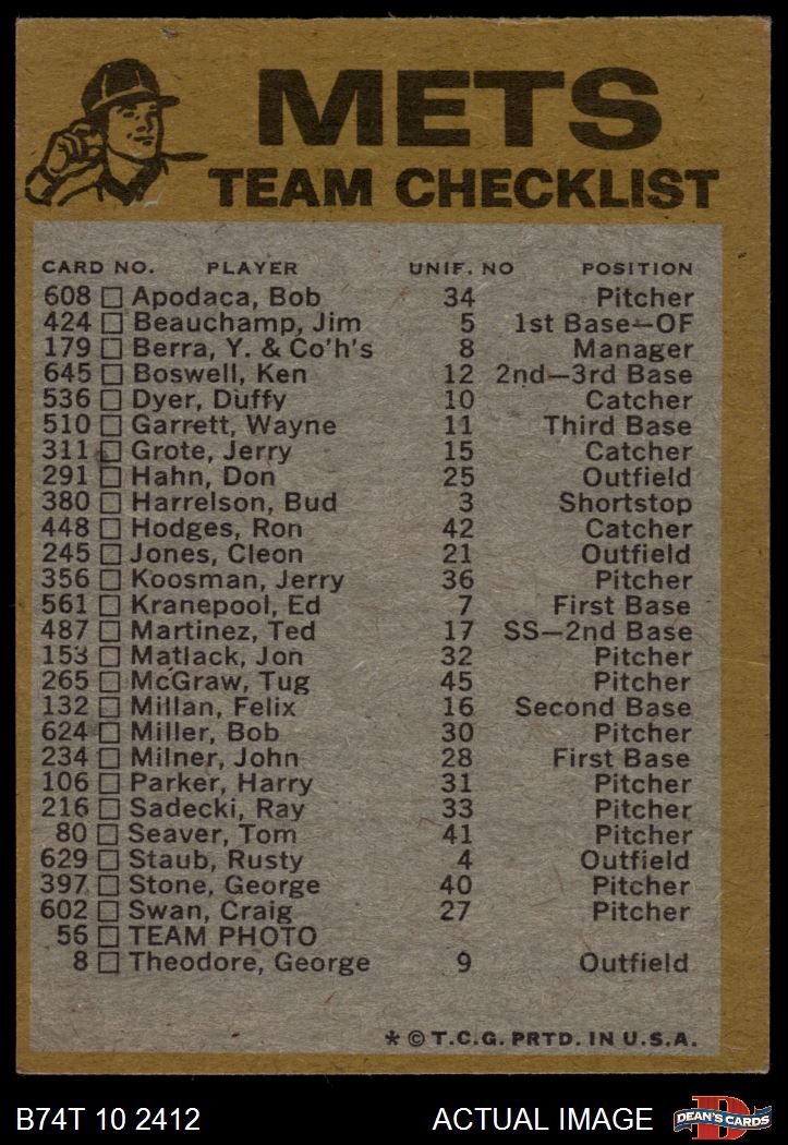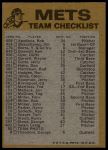 1974 Topps New York Mets Red Team Checklist 4 - VG/EX