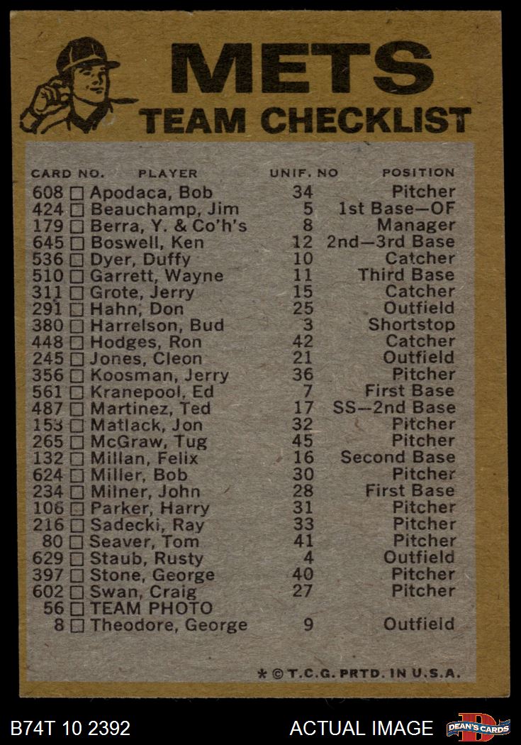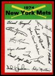 1974 Topps New York Mets Red Team Checklist 5 - EX