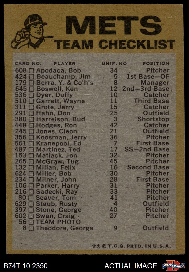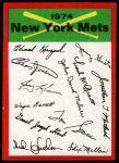 1974 Topps New York Mets Red Team Checklist 6 - EX/MT