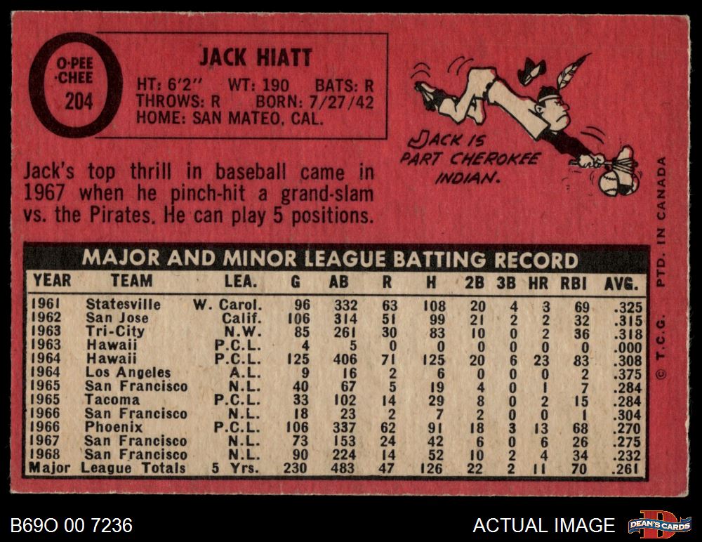 1969 O-Pee-Chee #204 Jack Hiatt 4 - VG/EX