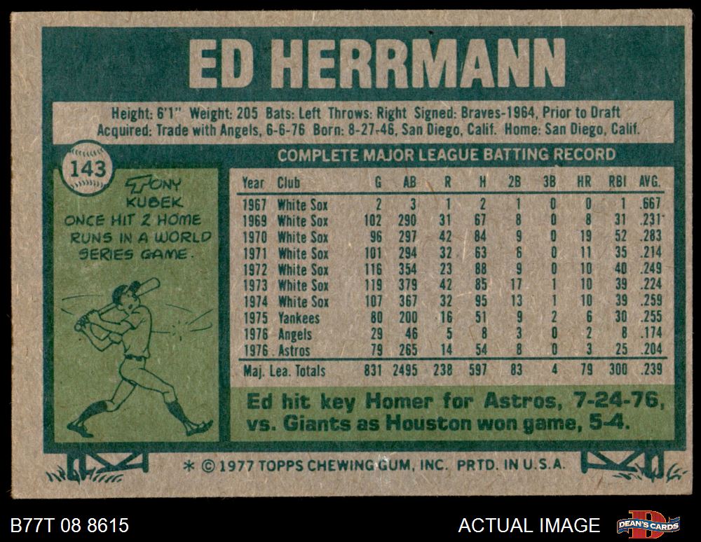 1977 Topps #143 Ed Herrmann 4 - VG/EX