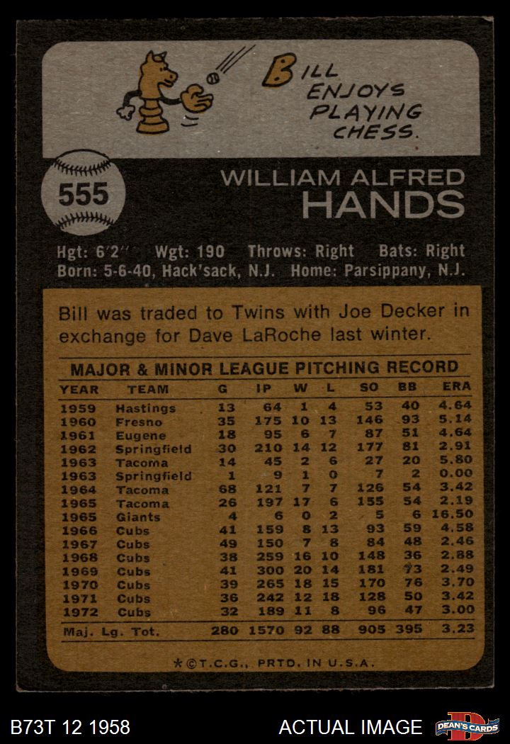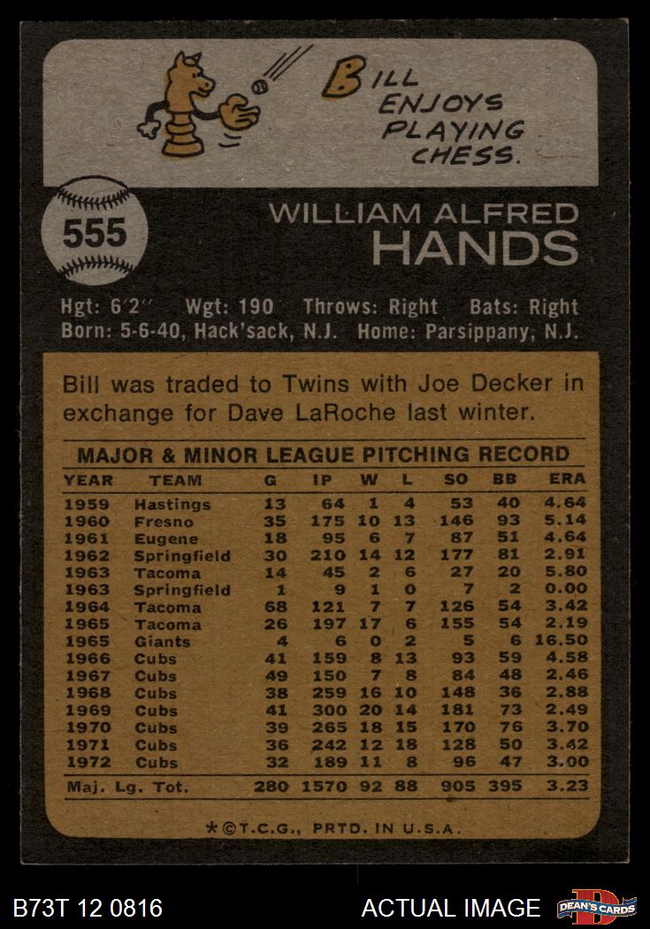 1973 Topps #555 Bill Hands 4 - VG/EX
