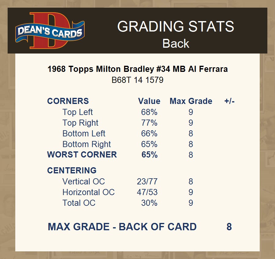 This is the extremely rare 1968 "Milton Bradley" variation, noted by the bright yellow coloring on the back of the card.