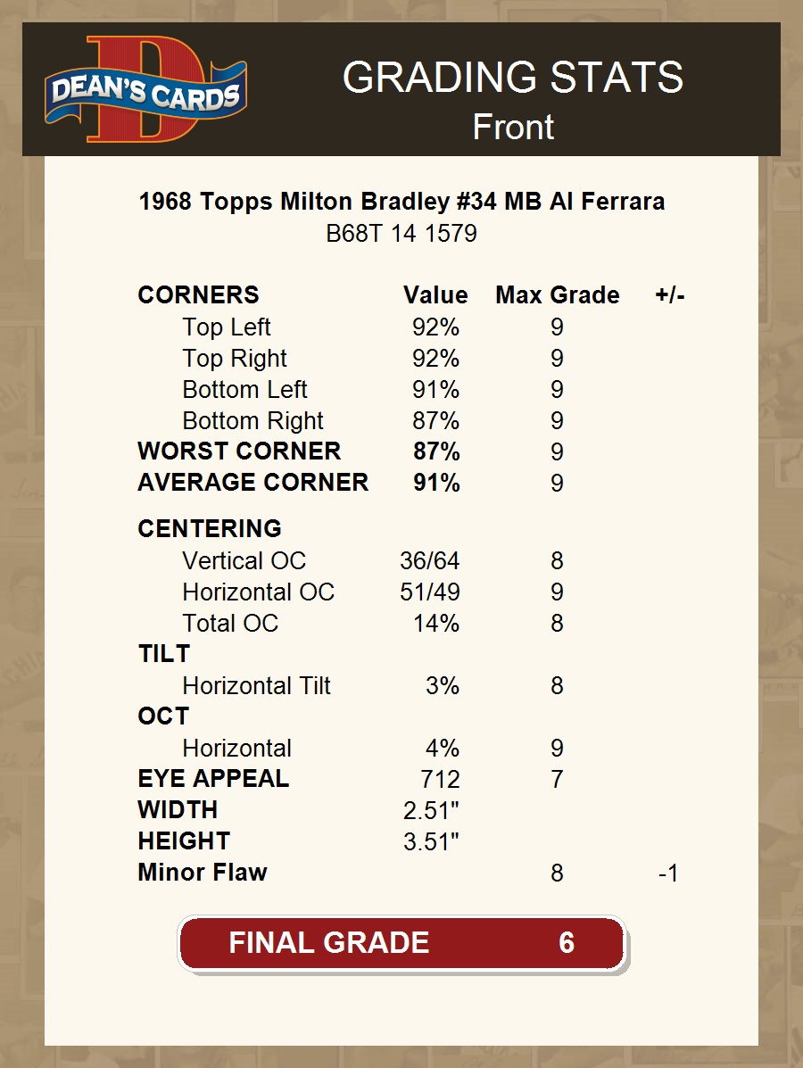 1968 Topps Milton Bradley #34 MB Al Ferrara