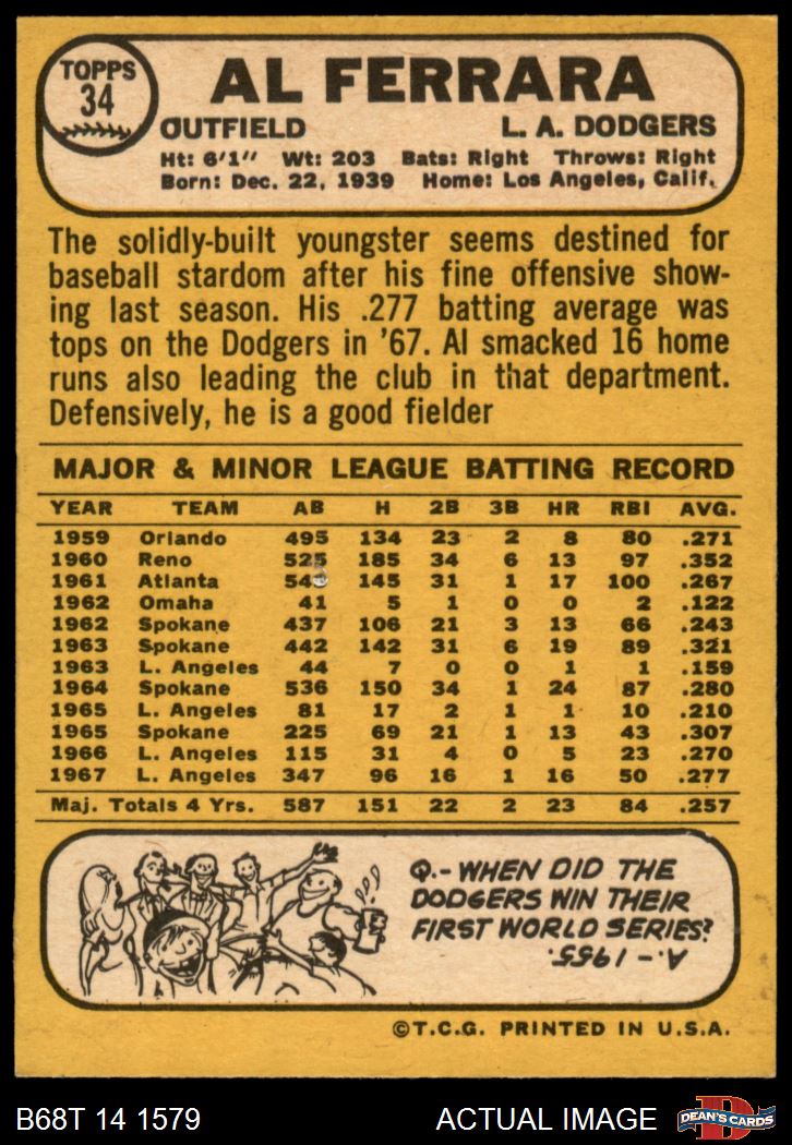 1968 Topps Baseball Cards (12,796 available)1968 Topps Milton Bradley Dodgers (2 available)