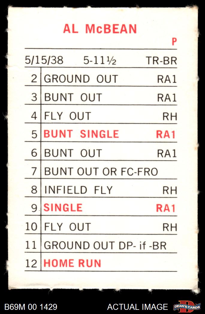 1969 Milton Bradley Al McBean 4 - VG/EX