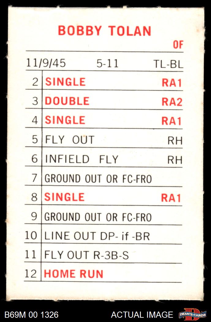 1969 Milton Bradley Bobby Tolan 5.5 - EX+