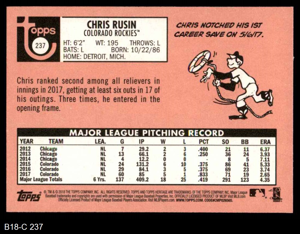 2018 Topps Heritage #237 Chris Rusin 8 - NM/MT