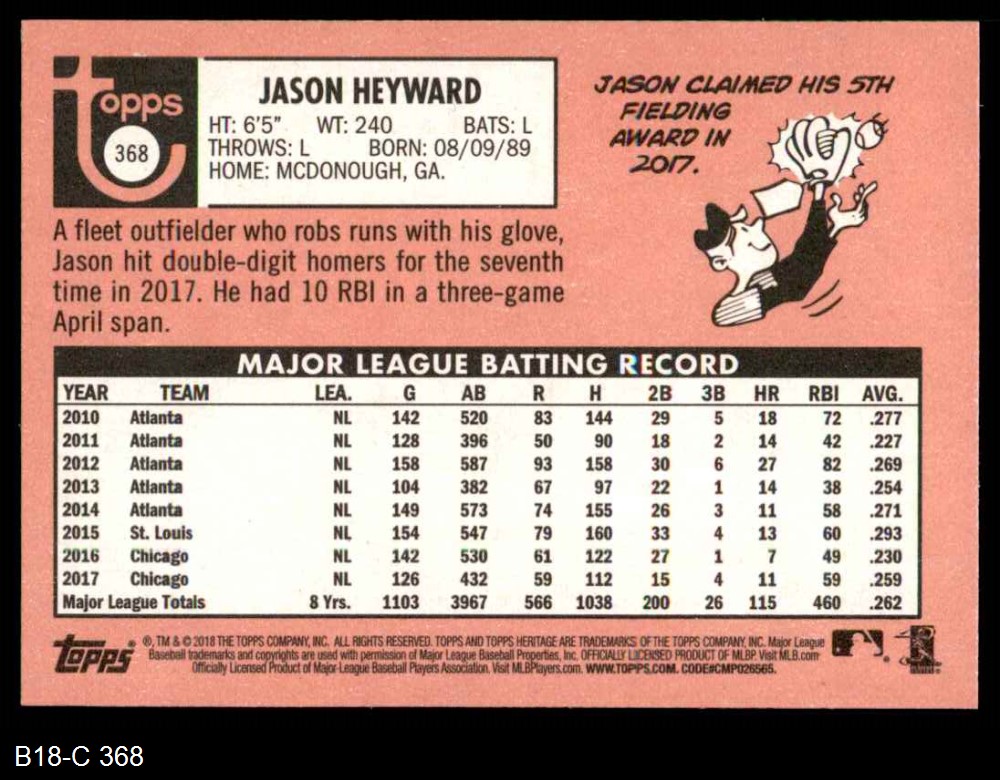 2018 Topps Heritage #368 Jason Heyward 8 - NM/MT
