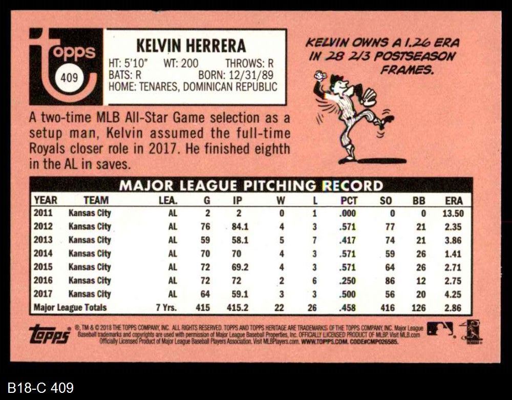 2018 Topps Heritage #409 Kelvin Herrera 8 - NM/MT