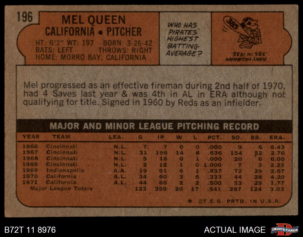 1972 Topps #196 Mel Queen 4 - VG/EX