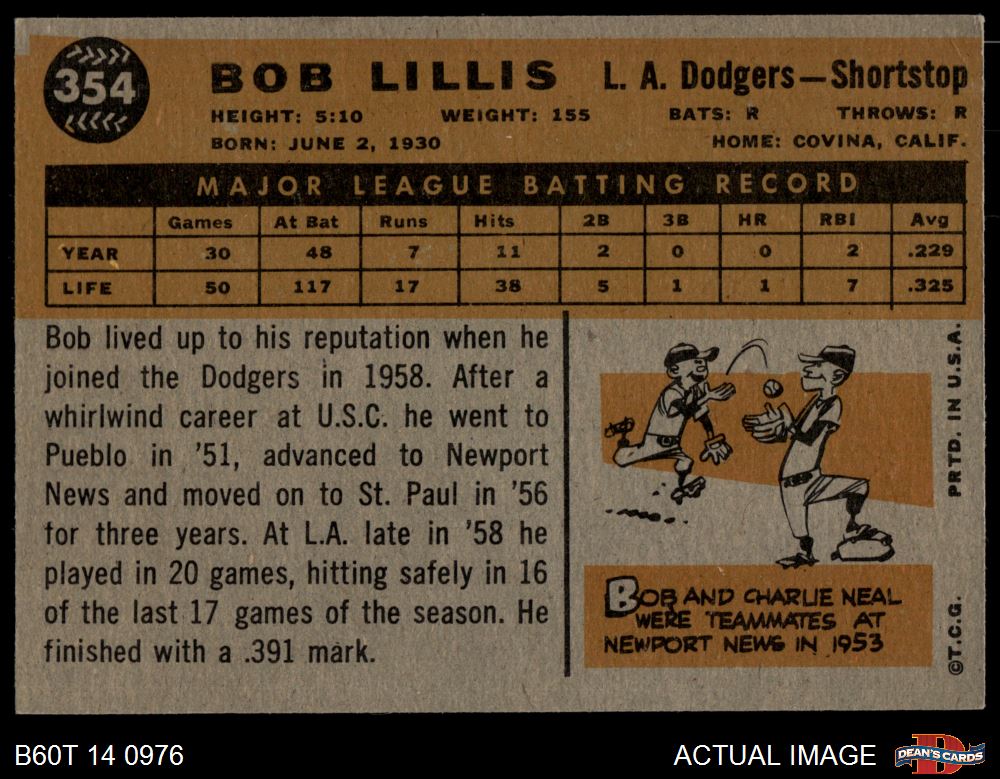 1960 Topps #354 Bob Lillis 4 - VG/EX