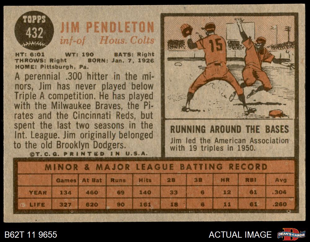 1962 Topps #432 Jim Pendleton 6 - EX/MT