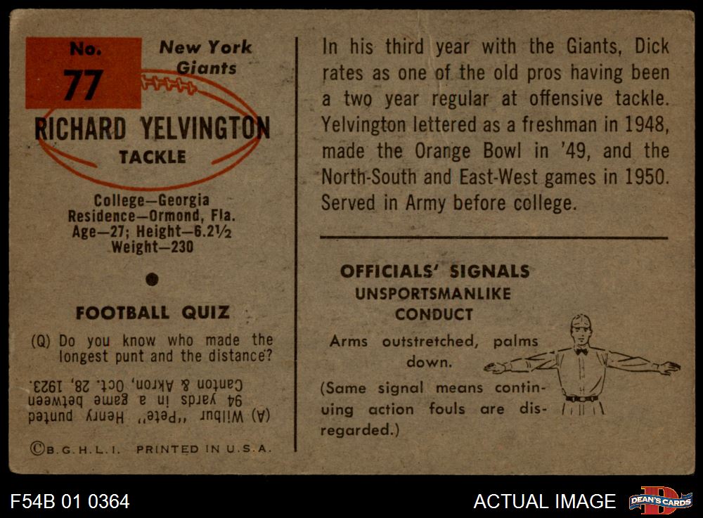 1954 Bowman #77 Richard Yelvington 2 - GOOD