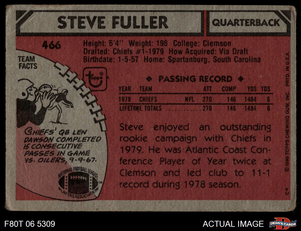 1980 Topps #466 Steve Fuller 1 - POOR