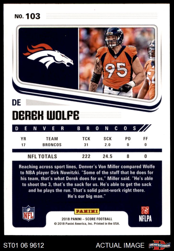2018 Score #103 Derek Wolfe 8 - NM/MT