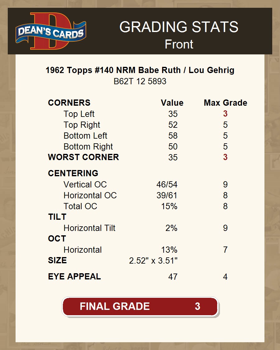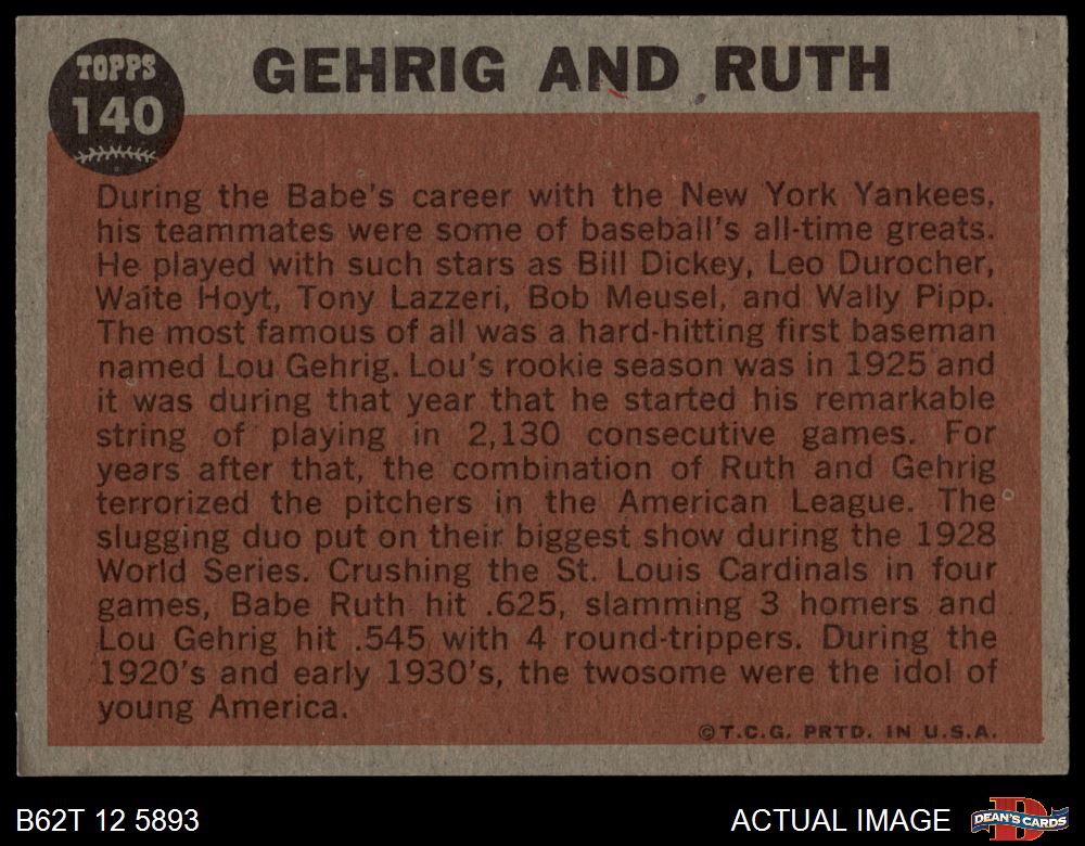 1962 Topps #140 NRM Babe Ruth / Lou Gehrig 3 - VG