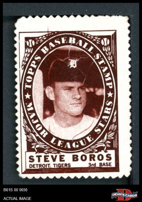 1961 Topps Stamps Steve Boros Front Thumbnail