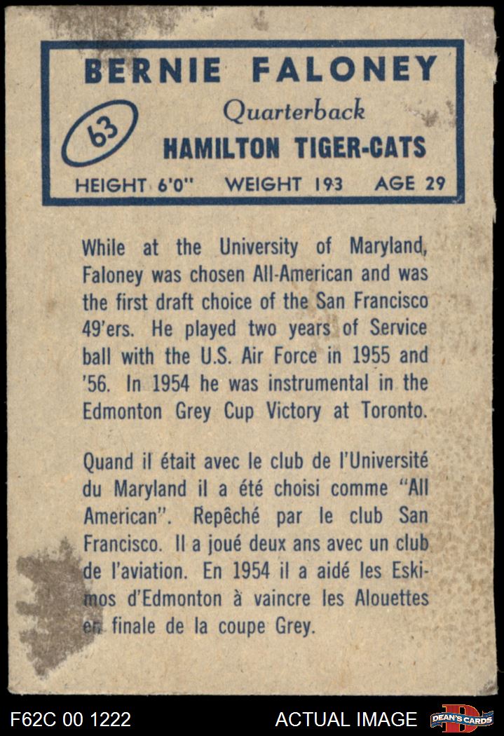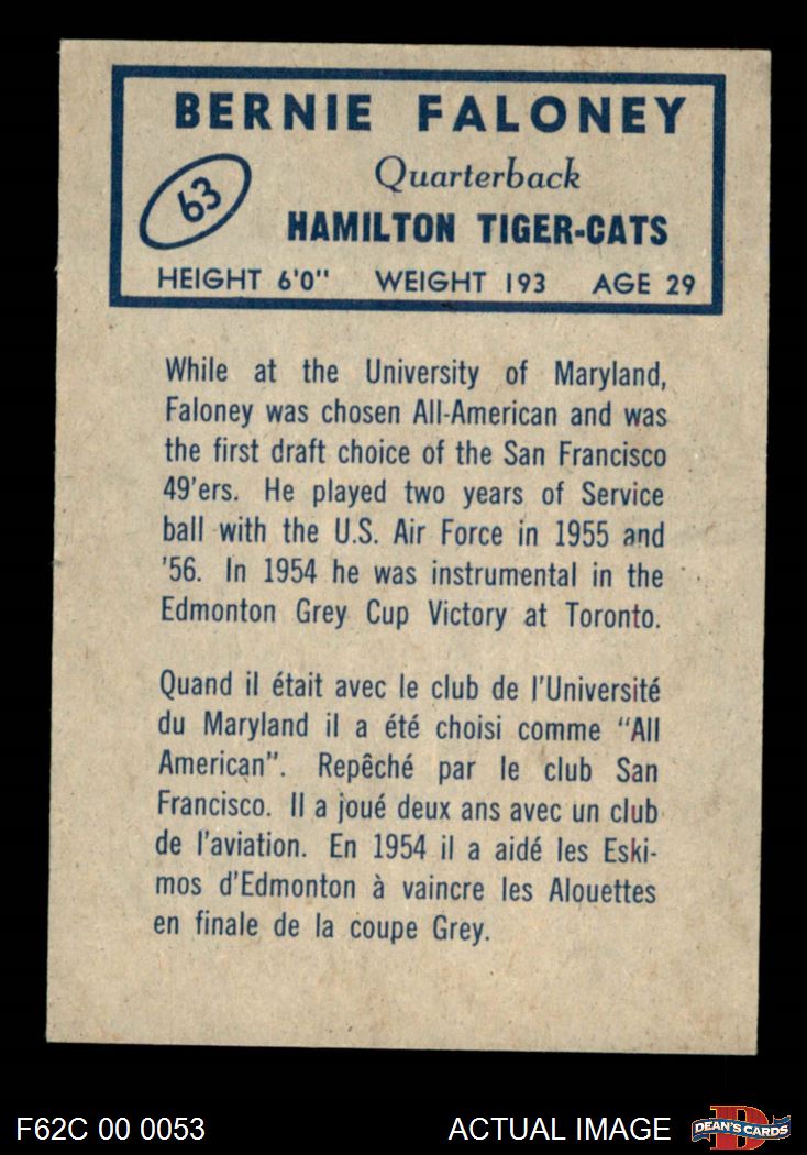 1962 Topps CFL #63 Bernie Faloney