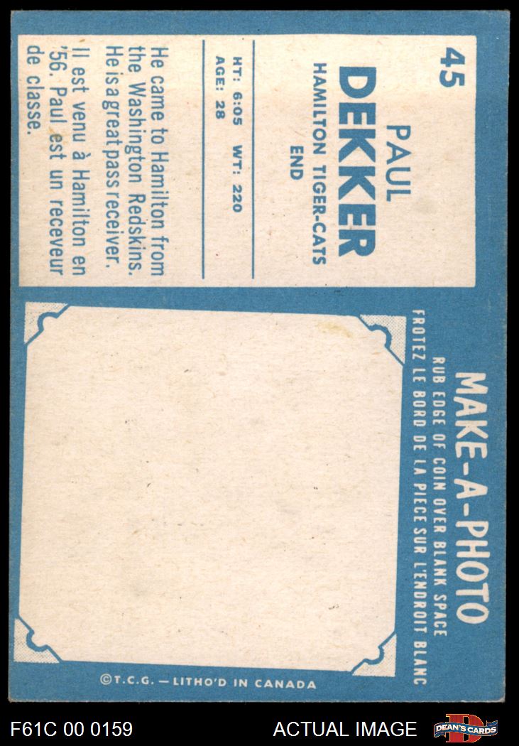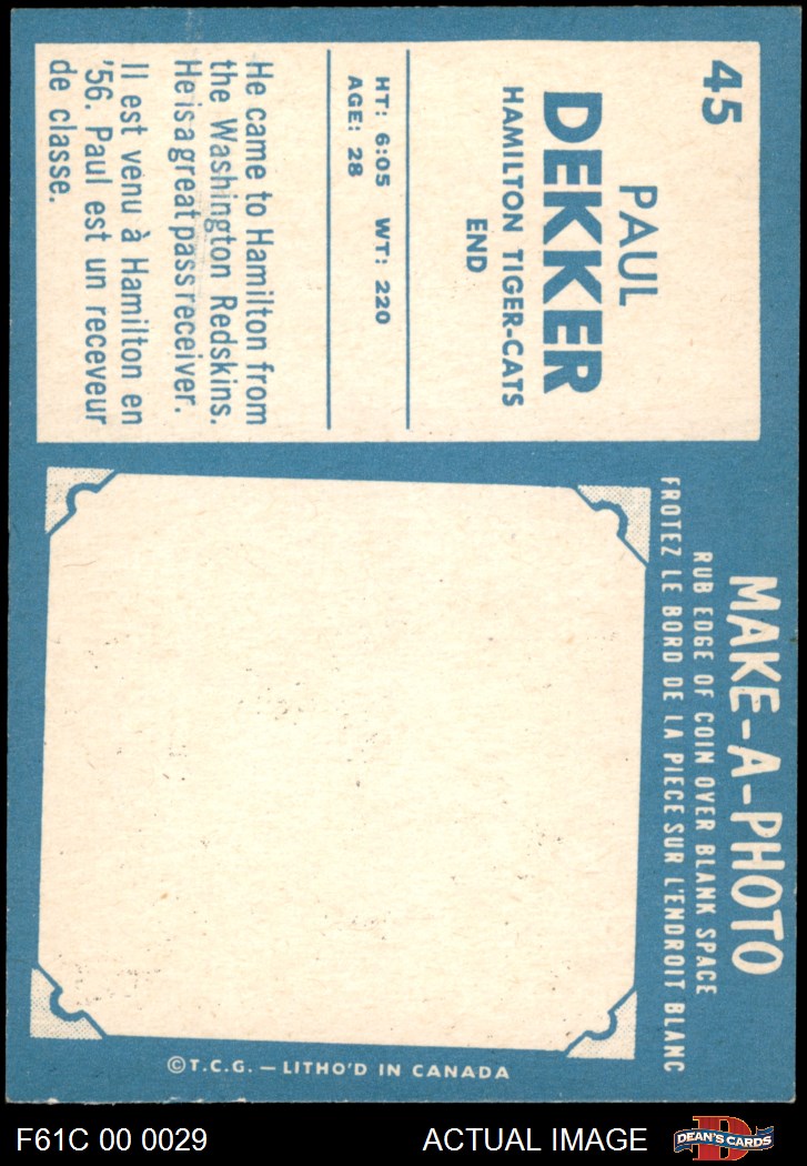 1961 Topps CFL #45 Paul Dekker