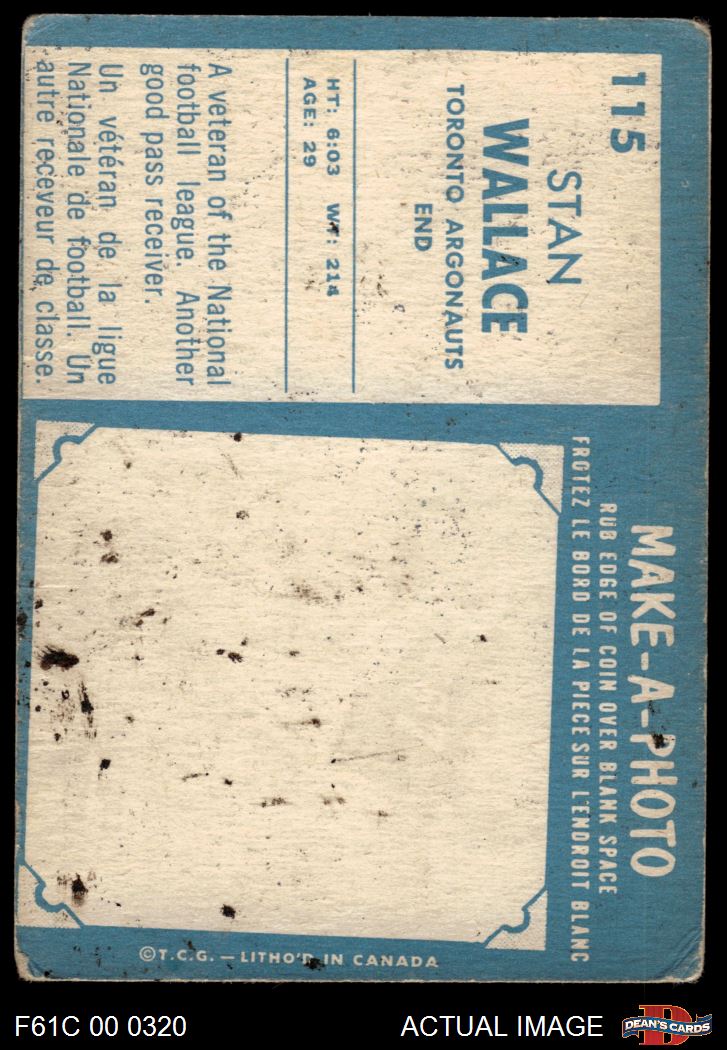 1961 Topps CFL #115 Stan Wallace 1 - POOR