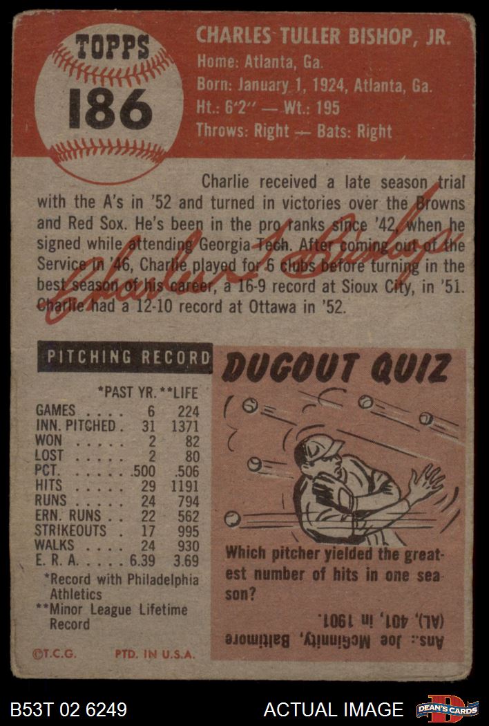 1953 Topps #186 Charlie Bishop 1.5 - FAIR
