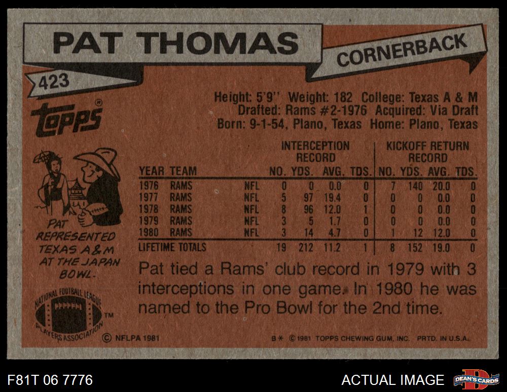 1981 Topps #423 Pat Thomas