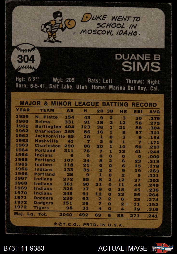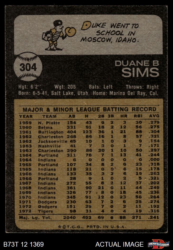 1973 Topps #304 Duke Sims 3 - VG