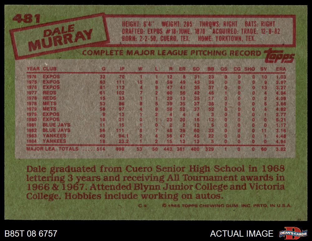 1985 Topps #481 Dale Murray 8 - NM/MT