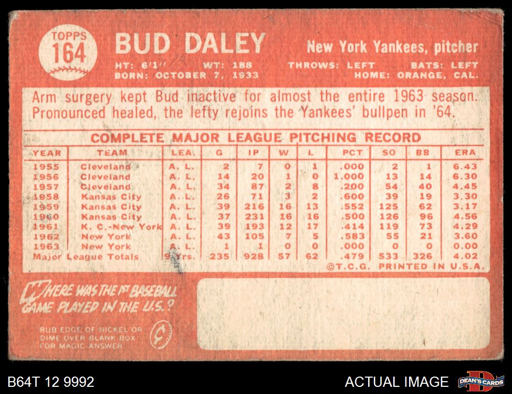 1964 Topps #164 Bud Daley